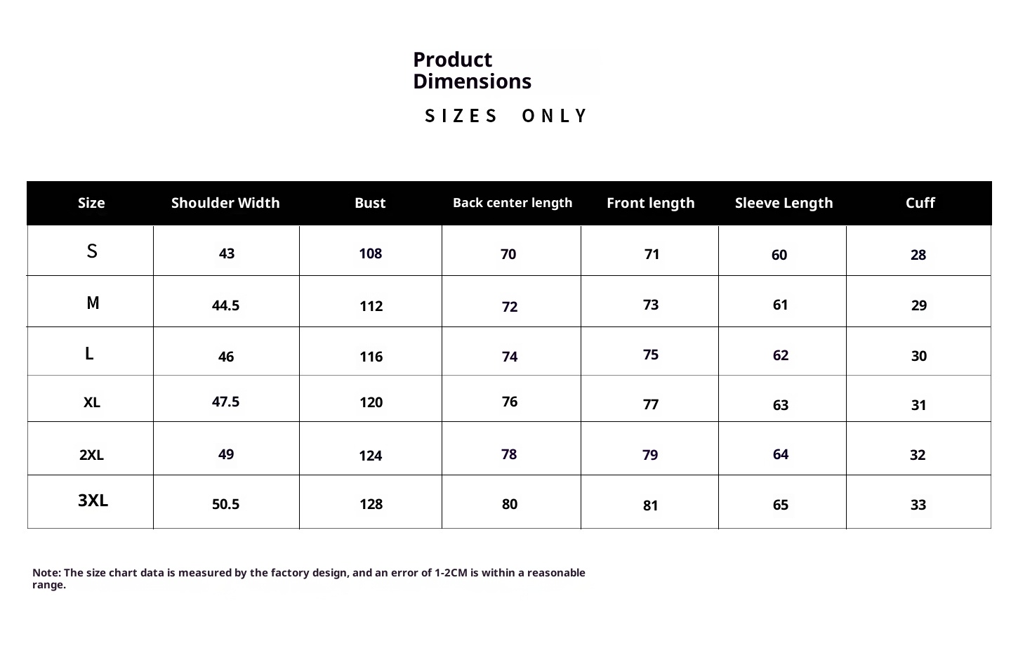 1. Asian sizes are 1 to 2 sizes smaller than European and American people. Choose the larger size if your size between two sizes. Please allow 2-3cm differences due to manual measurement. 2. Please check the size chart carefully before you buy the item, if you don't know how to choose size, please contact our customer service. 3.As you know, the different computers display colors differently, the color of the actual item may vary slightly from the following images.